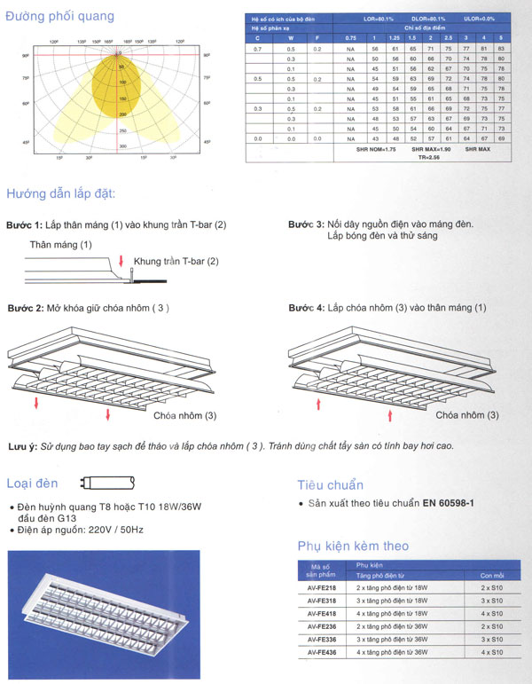 Máng đèn tán quang loại âm trần - E Series